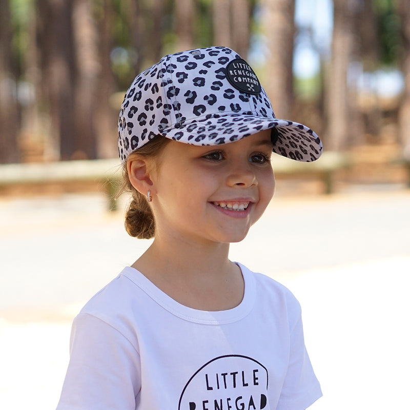 Unleash your wild side with our Snow Leopard Baseball Cap! This black-and-grey animal print beauty is made for the mini trendsetter (and their style-savvy grown-up too).